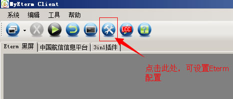 1.点击"系统"菜单的"设置"子菜单,或点击如下图中的图标按钮,进行Eterm的配置参数设置。