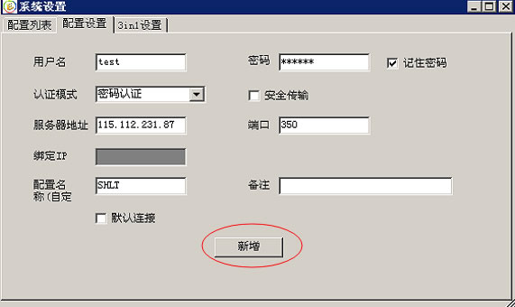 2.在配置列表中,点击"新增"按钮。会切换到"配置设置"界面。