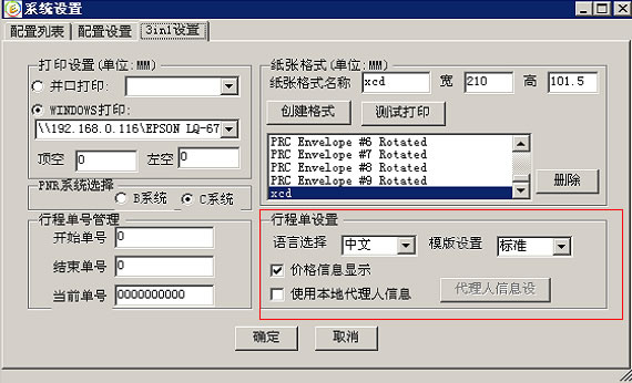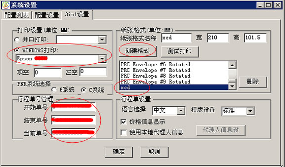5)设置好起始行程单号,结束行程单号,当前单号等参数,就可以点击确定了。